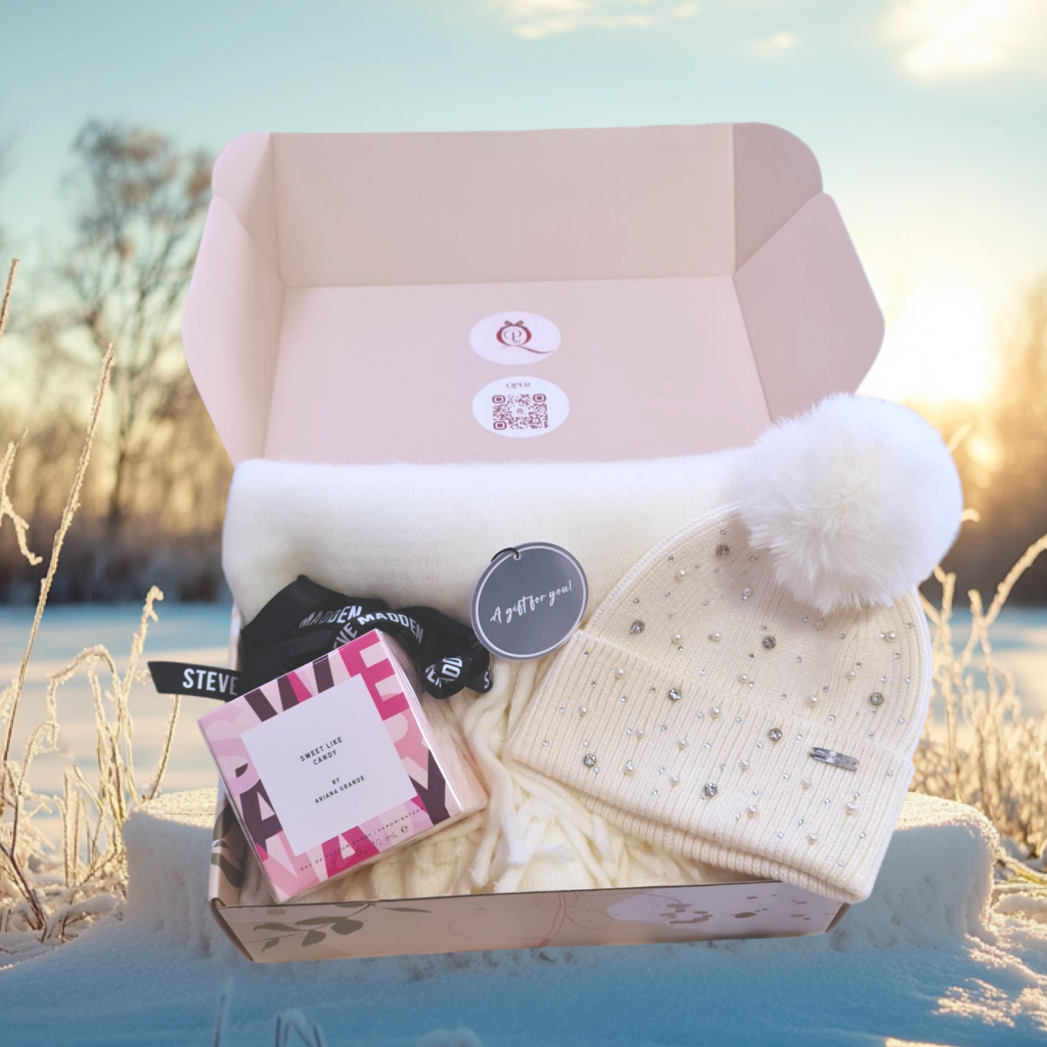 Unwrap the essence of cozy luxury and captivating charm with our exclusive "Winter Luxe" hamper. This meticulously curated collection combines the unparalleled warmth and sophistication of Steve Madden's winter essentials with the playful, irresistible allure of Ariana Grande.
